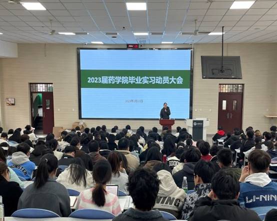 2023年2月23日下午,药学院在教学楼教一阶召开了2023届毕业生实习动员大会,药学院专业负责人、教研室主任、2019级辅导员以及2023届药学、中药学、市场营销专业毕业实习学生参加了会议,会议由药学院教学科科长邓文婷主持。