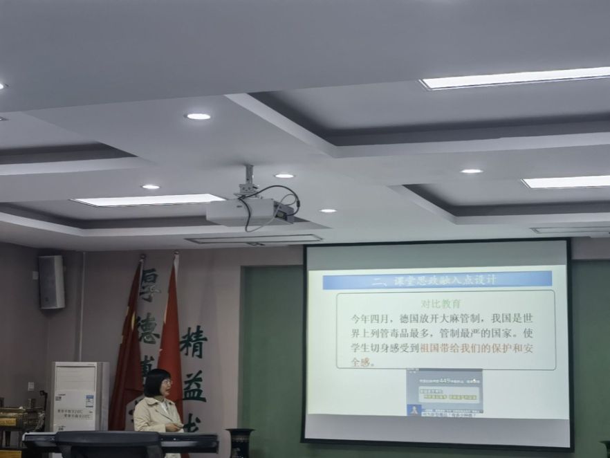 本次教研活动由梁晓燕老师主持,主题为“特殊管理药品的管理一章教学设计——课程思政元素融入”。梁老师通过精心的课前实践体验设计、课堂思政融入点设计以及课后作业理论联系实际应用的分享,为教师们提供了新的教学思路和方法。