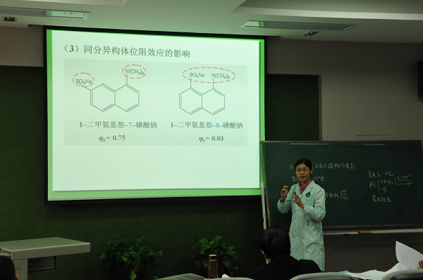 2015年11月18日,药学院在立德楼举行了青年教师基本功大赛选拔赛,本次参赛的成昭、张韫、杨阳等三位教师分别由化学、药物分析、天然药物化学教研室推荐。各位教师的教学设计科学合理、内容充实、条理清晰;教学方法运用灵活、重点突出;讲授中精炼的教学语言、精致的多媒体课件彰显出青年教师的聪明智慧与教学魅力,给评委老师们留下了较为深刻的印象。青年教师二十分钟的授课内容体现了完整而合理的教学设计思路,展示了一个完整的教学环节。教学基本功展示后,学校白惠民督导分别对三位教师的授课和教学设计进行了认真细致的点评,在肯定选手成绩的同时又提出宝贵的意见和建议;药学院对参赛教师提出希望,要求教研室指导青年教师继续改进参赛内容,预祝参加学校比赛的教师取得优异成绩!