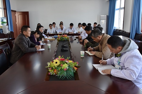 一到附属汉江医院,吕忠田副书记一行就与带教老师和实习学生亲切交谈,详细了解了学生的实习情况和思想动态,扈本荃老师对学生在毕业论文设计过程中存在的问题认真耐心解答。随后,药学院师生与附属汉江医院领导和带教老师召开了座谈会。会上,附属汉江医院党委书记刘睿、副院长赵军介绍了学生实习工作的总体安排、进展情况及下一步开展工作的一些想法,对药学院2017届实习生给予良好评价,并表示尽管医院师资力量还有一定差距,但是医院一定会全力保障学生毕业论文的完成。药学院吕忠田副书记对附属汉江医院对学生实习工作的支持表示感谢,药学院和附属汉江医院非常重视学生实习工作,毕业设计进展顺利,希望同学们一是要以积极、主动、认真、虚心的态度完成毕业论文;二是按刘睿书记刚才的要求,在实习过程中注意学会与临床医生、患者的沟通,为走向工作岗位积累工作经验,打好基础;三是要遵守纪律、注意安全,要时刻注意人身财产安全。学生们也纷纷表示要按照老师们的要求与嘱咐,认真完成毕业论文,力争取得好的实习成绩。