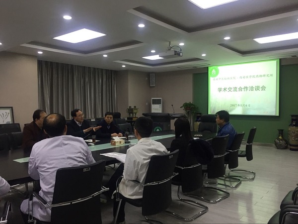 2017年1月6日下午,西安中医脑病医院宋虎杰院长一行到访药学院,陪同到访的还有西安中医脑病医院业务副院长闫炳苍和西安中医脑病医院院长助理、医教科主任杜晓刚。药学院院长秦蓓教授、党总支副书记吕忠田、药研所副所长杨黎彬及部分科研人员参加了此次合作交流洽谈。宋院长一行首先参观了药学院四个科研平台实验室,实地了解了药学院科研平台建设情况,随后,双方在药学院三楼会议室召开了合作洽谈交流会,就目前双方各自开展科研工作情况做了汇报,在项目申报,医院制剂、学术科研、医院教学、学科建设等方面做了深入交流,探讨了双方合作的途径和方式,双方表示希望今后要进一步加强合作交流,互惠互利,合作共赢。