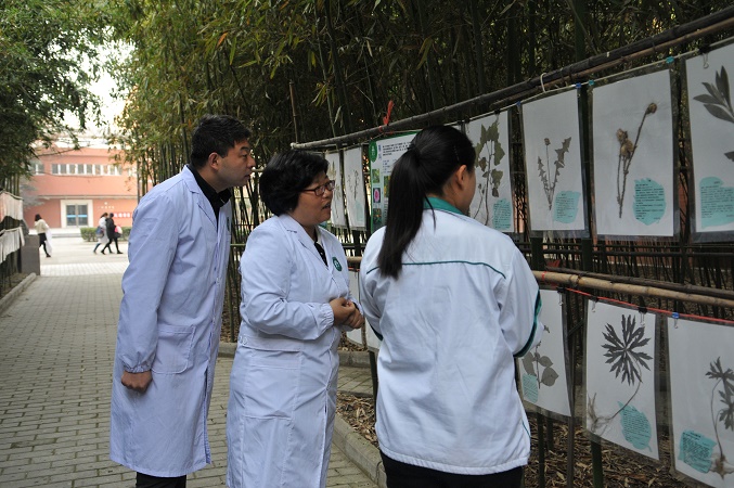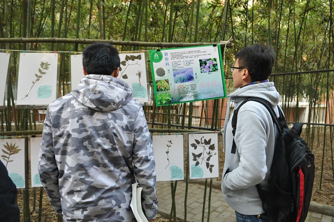 当中药本14级的同学们把精心制作不同种类的药用植物标本整齐的悬挂在竹林小径两侧时,即刻引来了不少同学的驻足观看。在现场观看的同学们还不时提出一些关于药用植物的功效、产地等许多相关问题,毫不掩饰他们对所展出标本的喜爱及。对于观看的同学提出的专业问题,在现场的生药教研室的老师们均为大家一一耐心解答。参观的同学们纷纷表示,在标本展上学到了不少的植物知识,特别是对于常见的很多种植物,现在不但知道了它们的名字,还知道了这些看似普通的小草,也有很好的药用价值。
