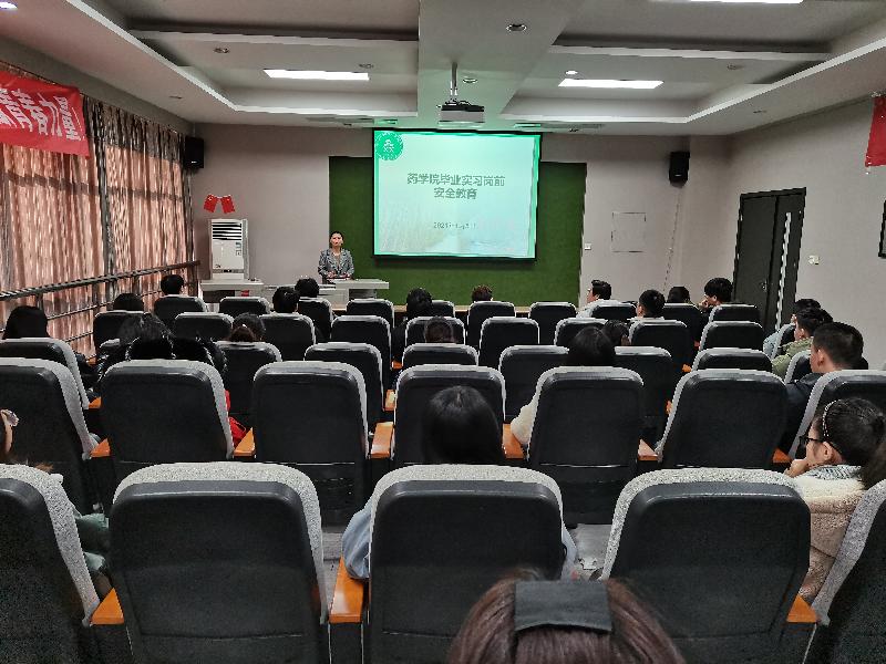 2021年1月5日下午,药学院在立德楼三层报告厅召开了2017级毕业生实习岗前安全教育会议,药学院党总支副书记王黎、2017级辅导员马含丹、赵理达以及实习学生代表参会,会议由学生科科长杨欣雨主持。