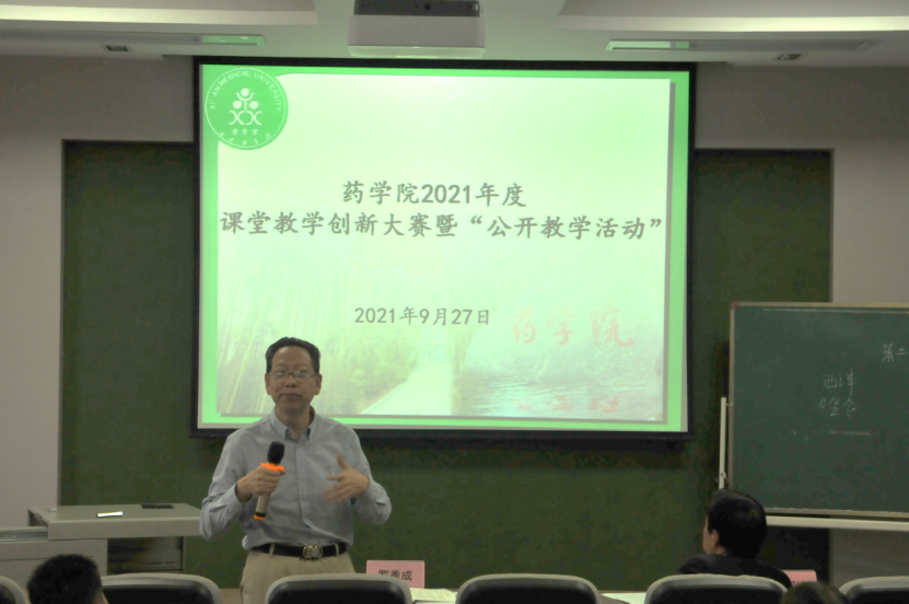 2021年9月27日下午,药学院在立德楼三楼学术报告厅举办了药学院2021年度课堂教学创新大赛暨“教学公开活动”。学校教学督导组长罗秀成教授及张润岐教授莅临指导工作。药学院党政班子、教学指导委员会成员、教学科全体成员、各教研室主任及实验中心主任、各专业负责人及无课教师参加了本次会议。
