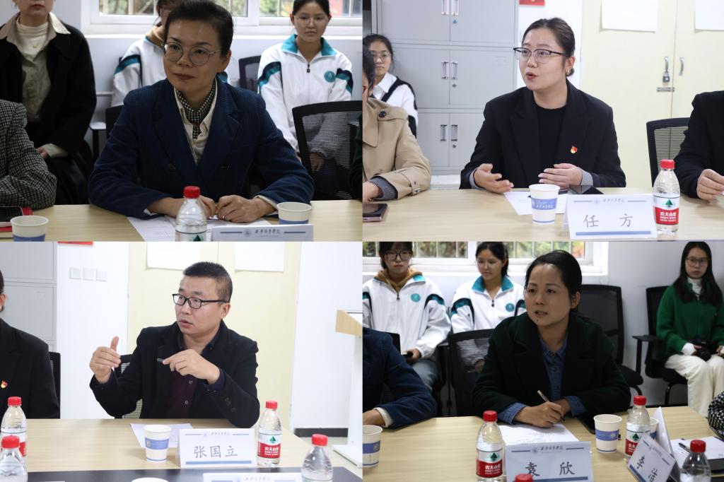 药学院党总支副书记任熙玲、全国党建“双创”样板支部书记任芳等与会人员就基层党支部建设及学生教育管理工作中存在的问题进行了探讨交流。