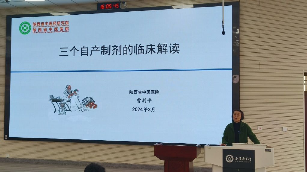 3月19日,药学院以“三个自产制剂的临床解读”为主题于未央校区教学楼一楼阶梯教室举办了第三场“名老中医进课堂”系列活动。特邀陕西省中医医院曹利平教授前来授课,药学院院长冯永辉、生药教研室教师、中药学及药学专业等60余名学生参加了此次活动。